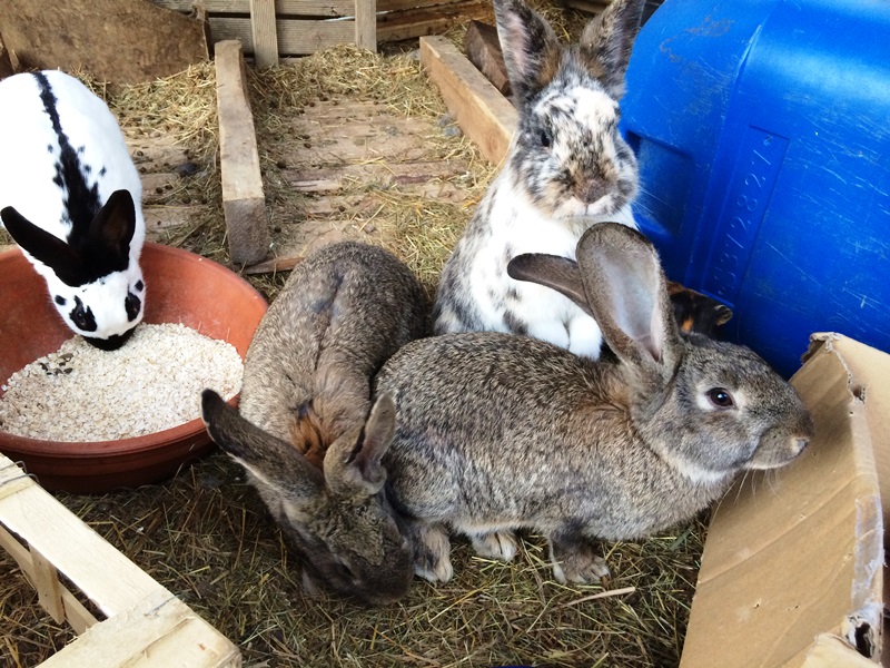 Da die Hasis absolut gegen die Haltung von Kaninchen in Käfigen sind, leben sie nun in unserer Hütte.