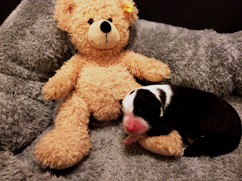 Mit fast 5 Jahren hat Melody nun am Weihnachtstag Ihren 1. Wurf von sechs bunten Mini Melodys zur Welt gebracht, alle sind gesund und munter. Fünf Rüden und eine Hündin haben das Licht der Welt erblickt und für uns beginnen nun einige spannende Wochen.