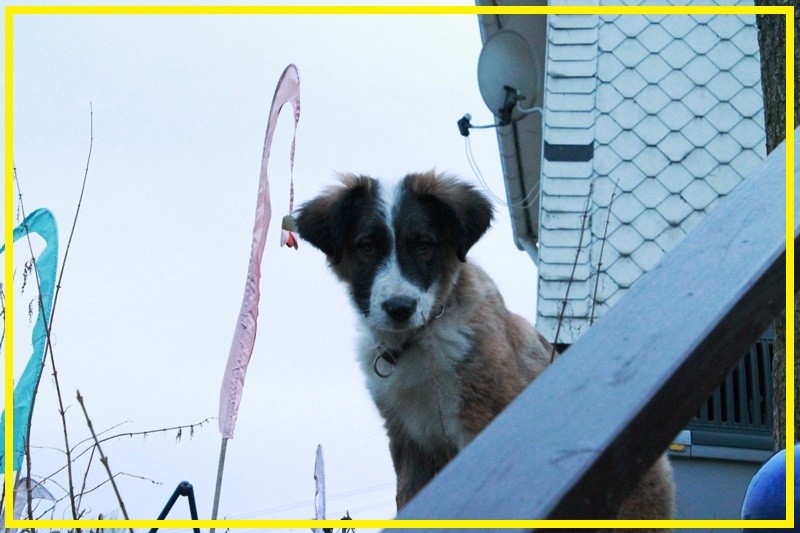 Tylor ist der geborene Hofhund. Er ist absolut ruhig und ausgegelichen. Ein toller Kinderhund, tolerant gegenüber all den Lebewesen hier, die so viel kleiner sind als er.